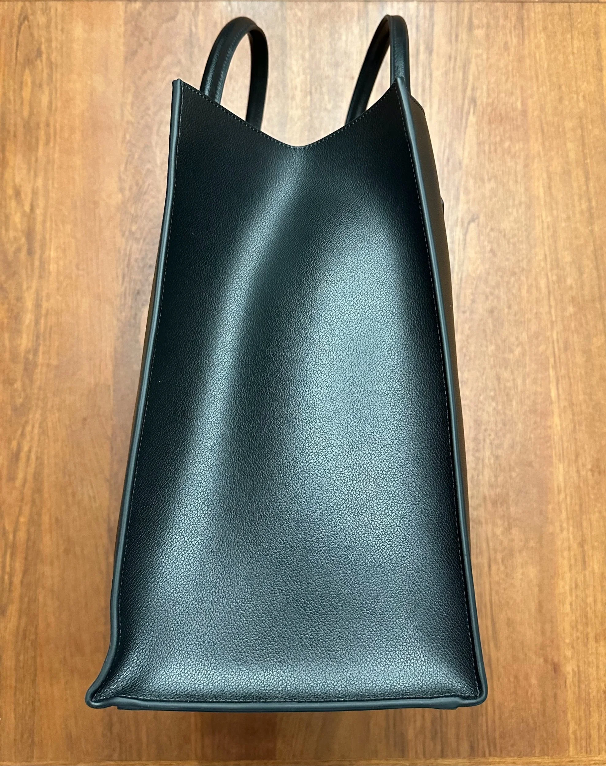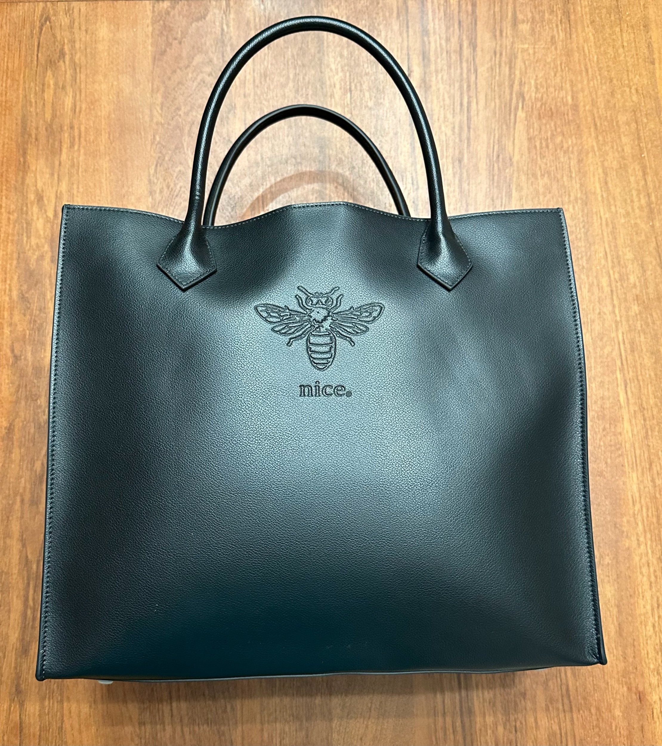 Made with Genuine Leather this tote bag is perfect for travel, work, grocery store, and life’s everyday needs. The interior lining is made from a micro suede complete with one large pockets. The interior is easily cleaned with a wet cloth . Bag closes with a magnetic closure This feet on the bottom of this bag provide a secure and protected placement . Measures 23” Height x 15.5” Long x 8” Wide